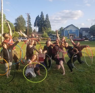 It has blossomed into Eugene, Oregon's home for all things hoop flow, offering classes, private lessons, hand-made hoops, "Build-a-Hoop Playshops", performance art, event entertainment, and curated experiences for teams, families, and relationships to grow stronger and more connected.